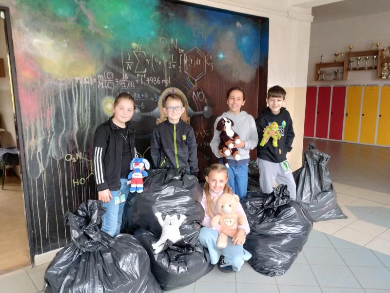 Třída 4. C a školní klub Cézar, pořádali sbírku plyšáků.