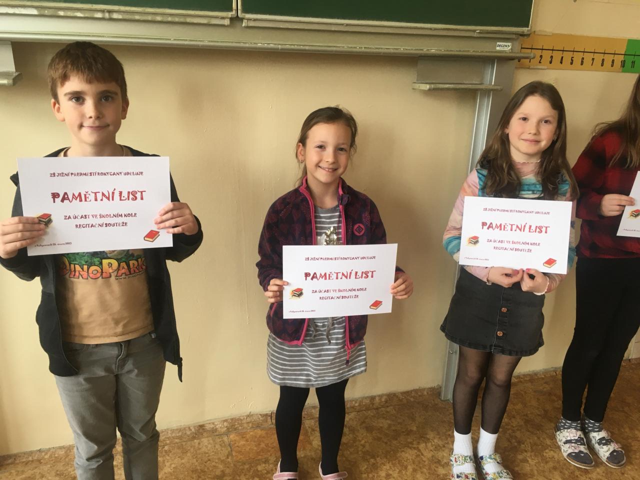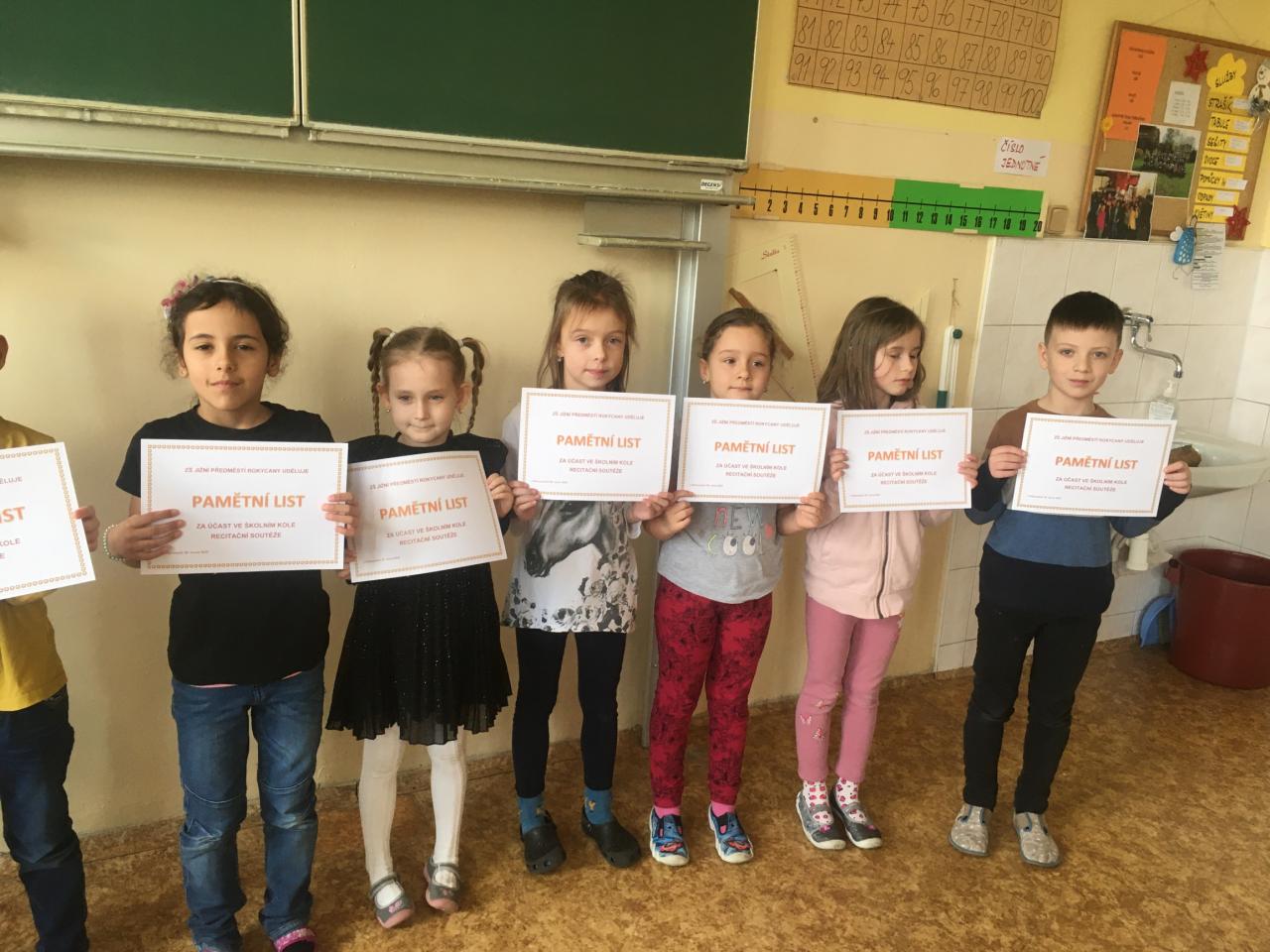 V úterý 28. února se konalo na 1. stupni školní kolo recitační soutěže, kterého se zúčastnilo 37 žáků z 1. – 5. tříd.